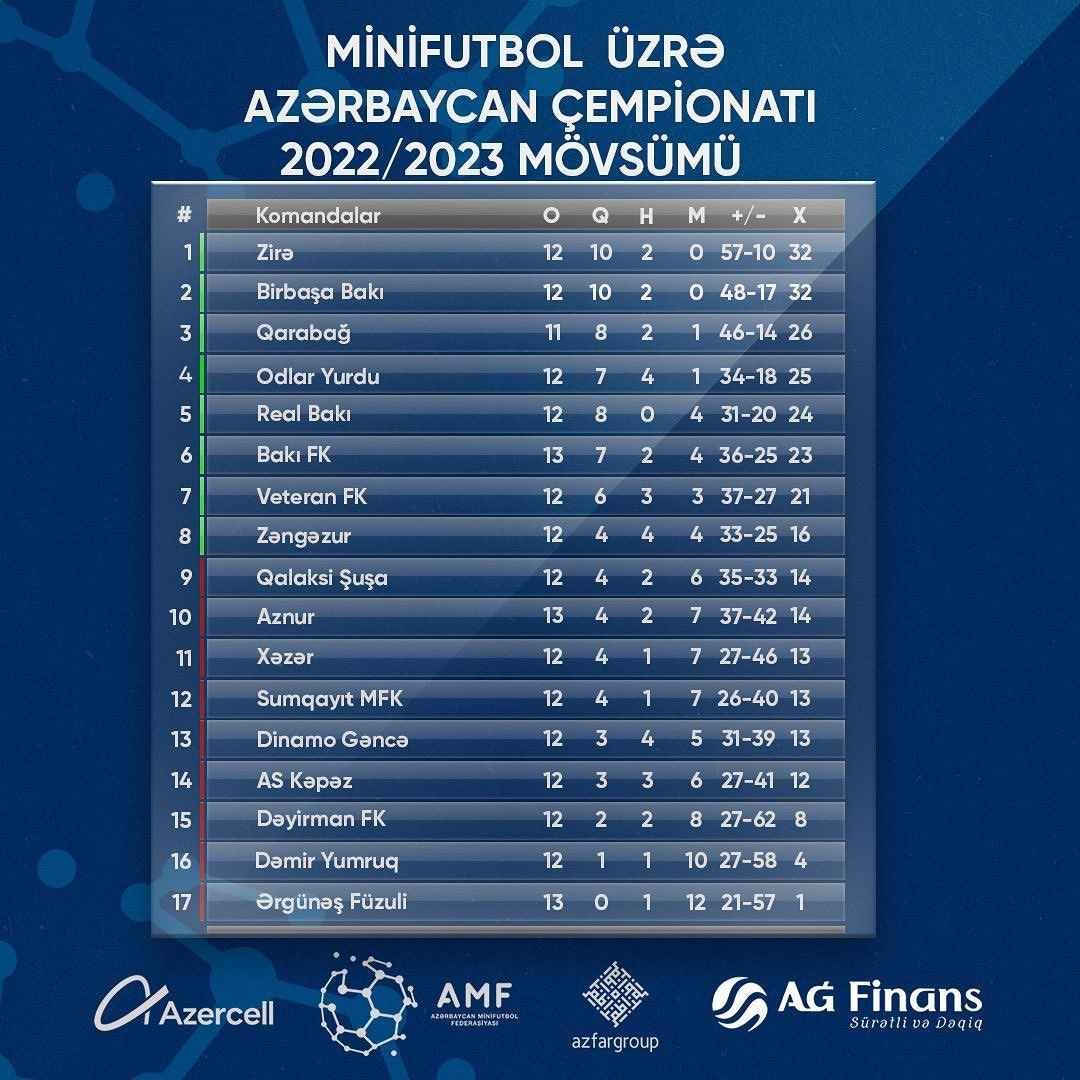 Minifutbol üzrə ölkə çempionatında 13-cü turun oyunları keçirilib.