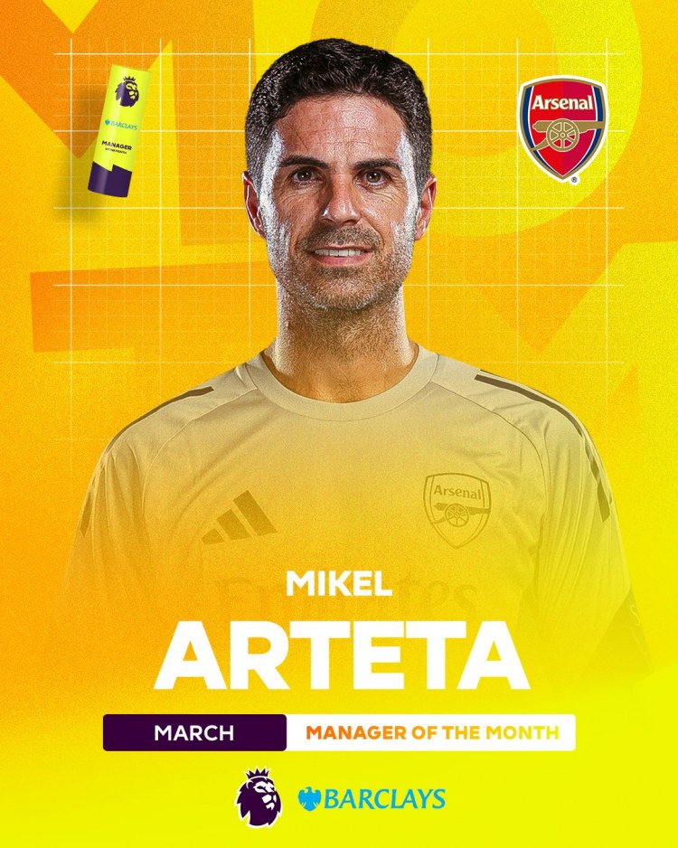 Ayın məşqçisi adına isə "Arsenal"ı çalışdıran Mikel Artela layiq görülüb. London təmsilçisi martda İngiltərə çempionatında keçirdiyi 4 oyunun hamısında qalib gəlib.