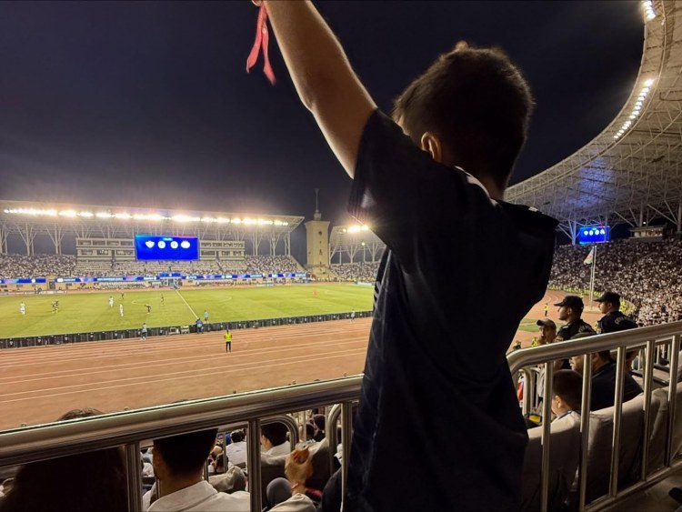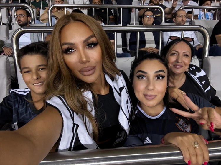 O, matça anası Ofeliya Fətəliyeva, bacısı Sima və oğlu Ariflə birlikdə tamaşa edib.
